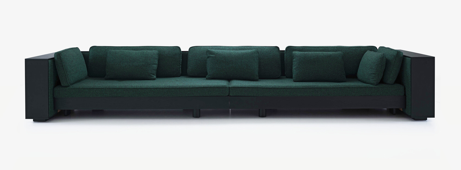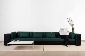 Cinna Design. Erwan Bouroullec Dimensions : l 452 x h 71 x p 110 cm Ensemble de canapés composé de méridiennes, dormeuses, inspiré par des nouveaux styles de vie, ultra urbain, ou le canapé doit être multiusages : on pourra s’assoir formellement ou ''se vautrer'', se restaurer ou travailler, s’allonger et dormir. Il intégrera livres et bibelots, peut être un écran ou une TV, il permettra de socialiser ou méditer. La version CLASSIC est un équilibre entre l’hyper confort et la posture. La posture plus verticale invite à l’interaction, à la socialisation. Le passe-poil renforce le côté ''classique'' et luxueux. L’assise de 40 cm est plus haute. Dans la conception du modèle se retrouve l’idée de produire mieux, avec moins de matériaux, moins de ressources. Il y a beaucoup de rigueur dans la mise en œuvre des formes. STRUCTURE cadre d’assise en panneaux de multiplis d’épicéa, habillé de panneau de MDF plaqué frêne. Accoudoirs, meuble long, meuble court, structure de dossier et bandeau d'assise en MDF plaqué frêne, parementés de mousse Bultex (48kg/m 3 – 7.1kPa) et de ouate polyester 110 g/m². Piètement en frêne teinté et pour les zones cachées en hêtre laqué noir. CONFORT l’assise est constituée de ressorts ensachés et de mousses polyuréthane haute résilience Bultex (38 kg/m3 - 3,6 kPa) : pour la partie intégrée dans les cadres d’assise. Le coussin d’assise est composé de mousse Bultex (36 kg/m3 – 2.8 kPa + 38kg/m3 – 2.8 kPa) et parementé ouate polyester 110 g/m². Couchage parallèle de 200 x 90. Le confort des dossiers est assuré par un ensemble de coussin de dossier en mouse Bultex (38 kg/m3 – 2.8 kPa) + plumette d’Oie et de cales reins en plumette d’Oie. COUTURE / HOUSSE deux points bourdons réalisés sur le coussin d’assise. Un double passepoil réalisé sur l’assise et les coussin de dossier, un simple passepoil sur les cales-reins Déhoussable par un professionnel. Lorsque le modèle KOBOLD CLASSIC est réalisé en ALCANTARA, ALPA, DIVA, SOFT TOUCH, les points bourdons réalisés sur l’assise sont remplacés par des points droits. canapé