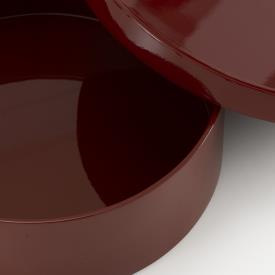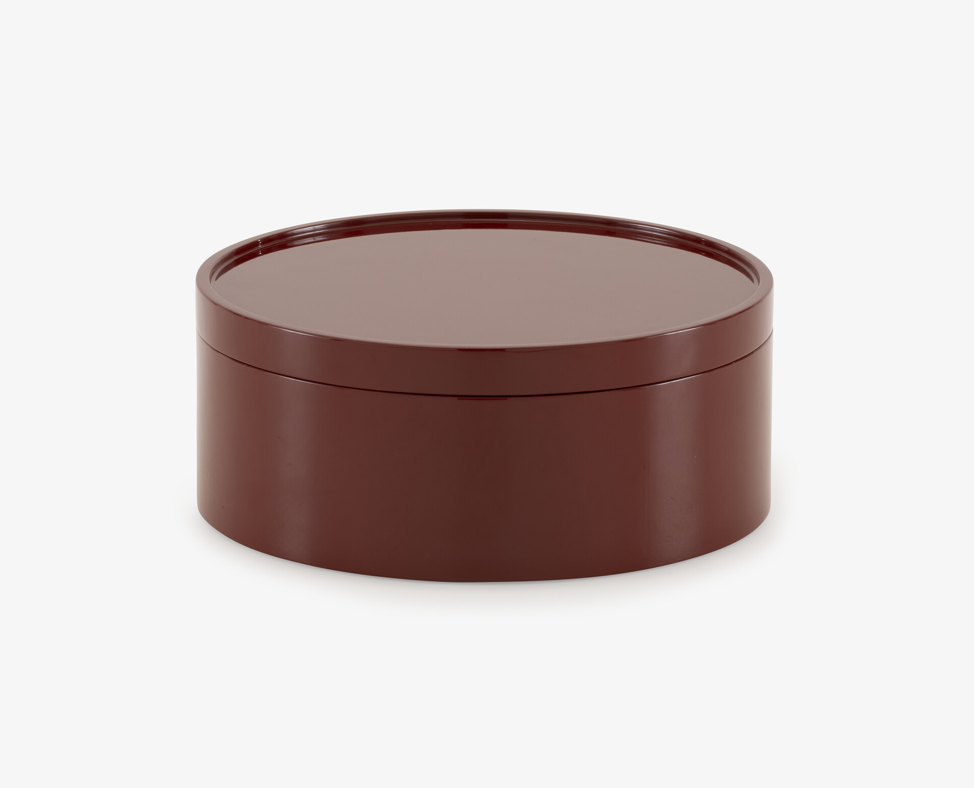 Carmin est une boîte ronde inspirée des boîtes à chapeau, au format généreux et polyvalent. Fabriquée en MDF laqué rouge carmin finition brillante, elle convient à de nombreux usages, comme rangement ou décoration. Elle peut également être associée au plateau Ellipso pour un ensemble élégant et pratique.