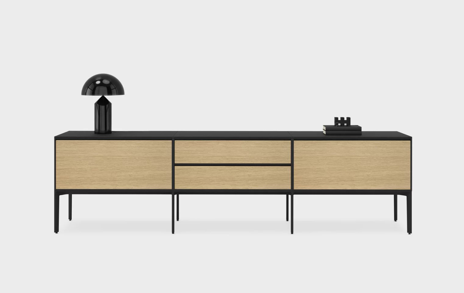 Avec le système de rangement ADD S, vous pouvez créer un buffet moderne en métal adapté à votre espace. Idéal pour les espaces publics et privés, il peut se composer d'éléments h74 avec tiroirs, portes basculantes et meubles de rangement ouverts. Le cadre en aluminium peut être peint en noir ou en blanc et tous les éléments peuvent être personnalisés dans leurs finitions. Vous pouvez créer un buffet moderne en bois et métal pour les contextes élégants et minimalistes, un buffet en métal et tissu pour jouer avec les couleurs et apporter de la chaleur à l'environnement, un buffet avec des portes laquées blanches ou noires pour s'accorder ou contraster avec le cadre en aluminium.
