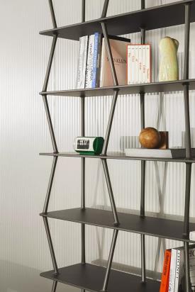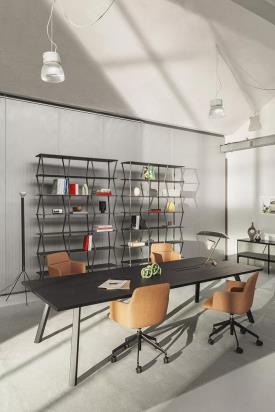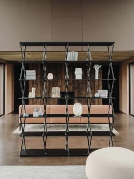Lapalma Design. Giuseppe Bavuso, 2022 - Minimaliste mais jamais ordinaire, JAZZ est une bibliothèque en aluminium extrêmement fonctionnelle, parfaite pour définir les environnements hybrides ouverts des espaces de vie contemporains au bureau ou à la maison.