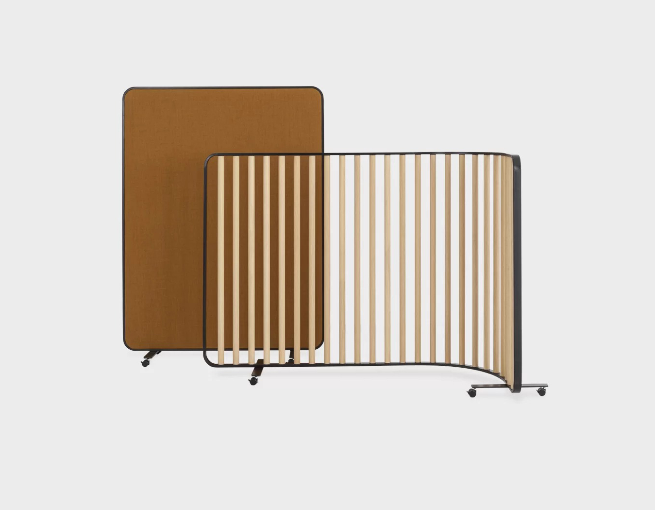 Système de cloisons modulaires avec structure en métal laqué. Disponible avec tubes revêtus en chêne blanchi, noir pore ouvert ou laqués. Dans la version revêtue, le tissu est posé sur un panneau insonorisé en fibre polyester ignifugée qui absorbe le bruit. Les cloisons SCREEN peuvent être joints grâce à des aimants et combinées avec le système PLUS.