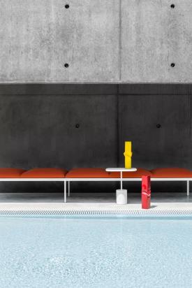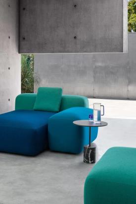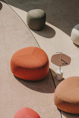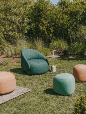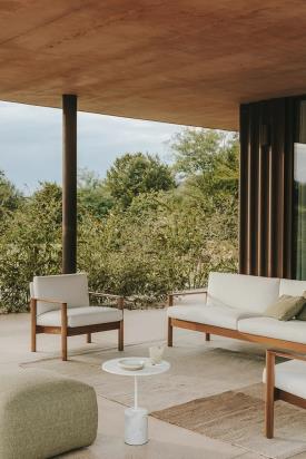 Lapalma Design. Francesco Rota, 2016 - Essence pure outdoor La table basse - sculpture JEY se déplace avec aisance entre un canapé, un fauteuil, une autre table.