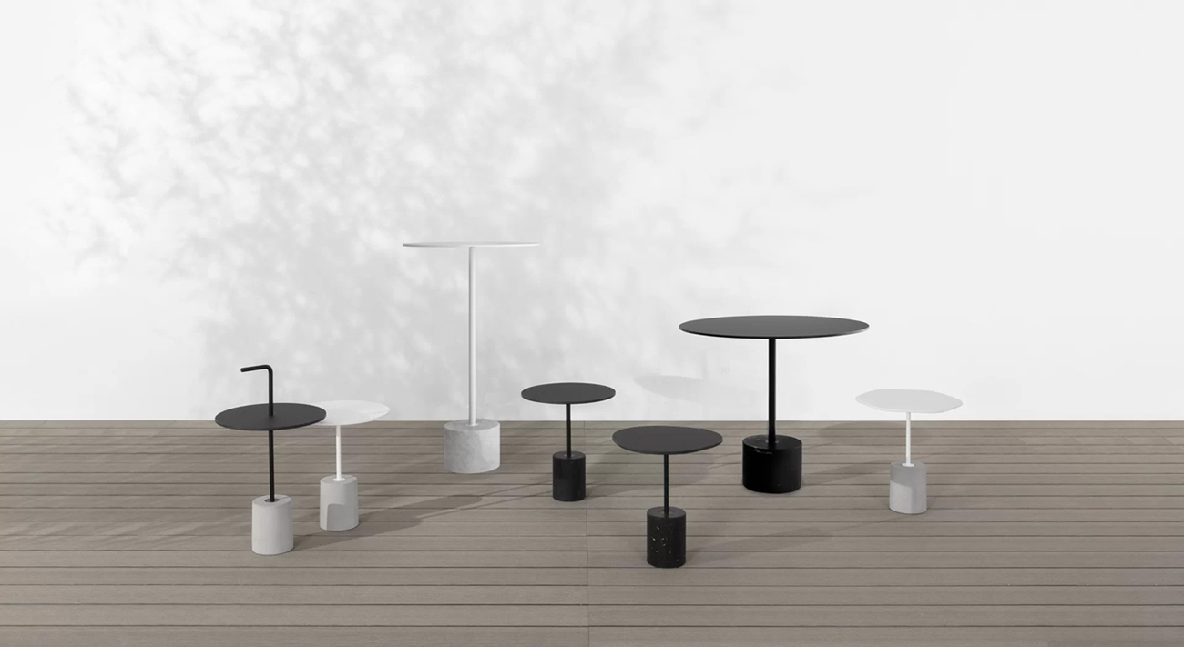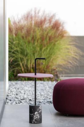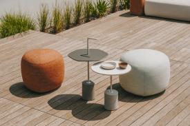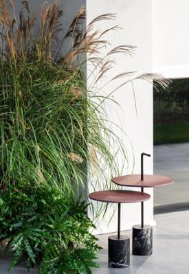 En soi, elle vole, c'est le ciel, c'est la liberté. Essence pure outdoor La table basse - sculpture JEY se déplace avec une autre table. Le piètement est en ciment ou en marbre, la tige en tube soutient le plateau aux différentes formes géométriques et la poignée garantit une prise en main facile et élégante. À cueillir comme une fleur.