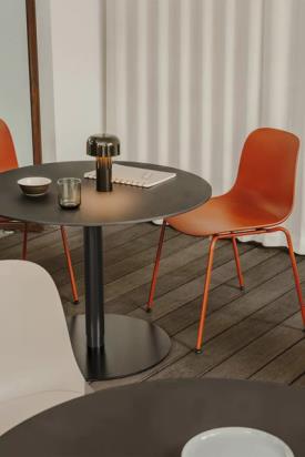 Une colonne et le monde autour. La table RONDÒ développe musicalement un thème cher au minimalisme : le support central qui soutient le plateau. Le profil est arrondi, même dans la forme carrée. Le réglage en hauteur et les variations de couleurs (de la précision du noir et blanc à la richesse du bois) créent un concert de solutions d'une élégance absolue.