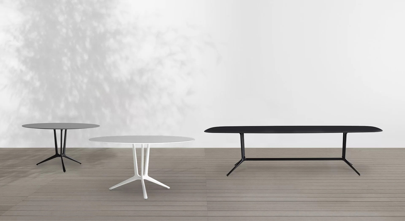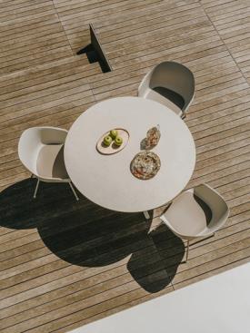 Parfois, il vaut mieux quitter les grands axes et emprunter des chemins moins fréquentés. Un style pour les grands voyageurs, à l'image de Giuseppe Bavuso, qui a baptisé TRAIL la nouvelle table de la collection Lapalma. Son profil est un subtil mélange entre l'espièglerie des années 50, l'essentiel nordique et le savoir-faire italien d'exception. Le piètement en aluminium moulé sous pression, où les trois pieds aux formes douces, inspirées par le monde animal, s'assemblent discrètement, donne le ton et affirme un design unique. Le plateau rond en stratifié haute pression Fenix 10 mm, disponible en plusieurs coloris, s'étend jusqu'à 3 mètres de diamètre. Conçue pour aménager jardins, terrasses, espaces publics et cafés, cette table est entièrement démontable et recyclable. Avec TRAIL, le développement durable n'est pas une option, mais bien une priorité pour Lapalma.