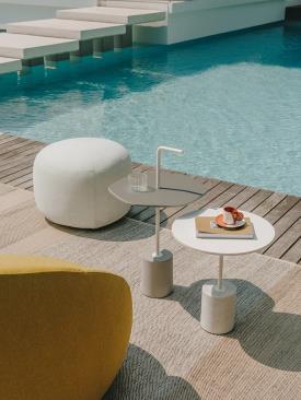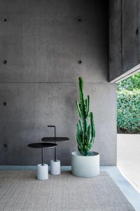 En soi, elle vole, c'est le ciel, c'est la liberté. Essence pure outdoor La table basse. Le piètement est en ciment ou en marbre, la tige en tube soutient le plateau aux différentes formes géométriques et la poignée garantit une prise en main facile et élégante. À cueillir comme une fleur.
