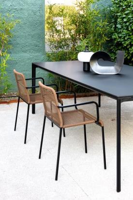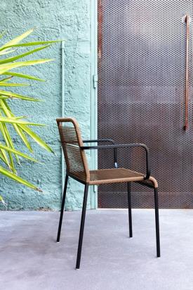 Idéale pour l'extérieur, parfaite dans n'importe quel environnement naturel, cette chaise allie la solidité de sa structure en acier inox à la parfaite adaptabilité des cordons qui entourent le dossier et à la grande assise carrée.