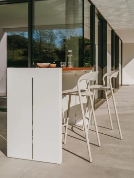 La collaboration entre Lapalma et Mario Ferrarini se poursuit, sous une bonne étoile, comme en témoigne l'élargissement de la collection HAWI, lancée pour la première fois au Salone del Mobile 2024. Caractérisée par une esthétique essentielle et intemporelle, en accord avec les autres propositions du catalogue Lapalma, HAWI présente une tournure intéressante donnée par le contrepoint vif entre la solidité de la structure et le dossier gracieux qui, tout en maintenant la continuité avec elle, s'allège dans son développement. Présentée en 2024 comme un siège, empilable et extrêmement polyvalente, la collection s'élargit en 2025 en ajoutant le tabouret, disponible en deux hauteurs.