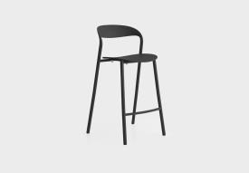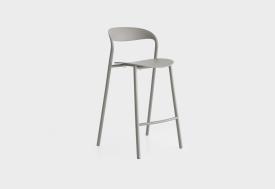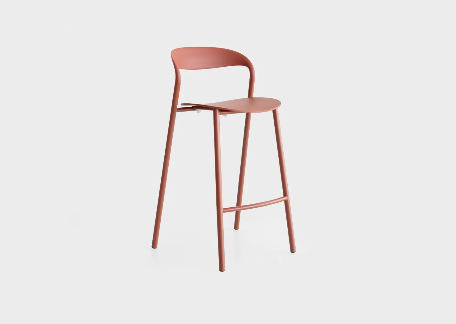 Tabouret H65 avec cadre en acier peint par poudrage et dossier et assise en polypropylène en différentes couleurs. L'assise peut également être revêtue de tissu ou de bois multicouche dans différentes finitions. Pieds en nylon avec feutre intégré.