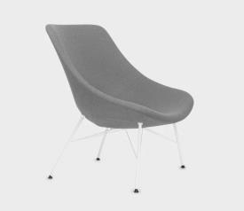 Fauteuil lounge avec une structure en métal et mousse de polyuréthane ignifugée revêtue de tissu, peau ou ecopeau. Base avec 4 pieds en acier chromé mat ou laqué époxy. Patins en nylon avec feutre.