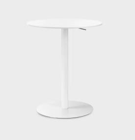 Table disponible en différentes hauteurs fixes ou réglables avec plateaux ronds ou carrés en plusieurs dimensions et finitions. Base en métal revêtue en acier inox finition ”toile de lin” et colonne chromée mat ou entièrement laqué en poudre blanc ou noir.