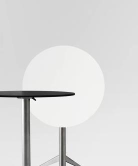 Pieds sécurisés, base élancée, plateau inclinable. SELTZ, une table ronde pliante, a pour objectif d’encombrer le moins possible et s'adapte aux situations nécessitant une grande flexibilité.