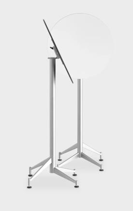 Les pieds sont réglables, le plateau s'incline: rien n'est définitif dans SELTZ, la table haute pour bar. Pratique à gérer, pratique à utiliser.