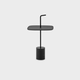 Petite table avec base en marbre blanc Carrara, noir Marquinia ou béton. Top en hpl Fenix® blanc ou noir avec formes différentes et partes métalliques laquées. Disponible en deux hauteurs sans ou avec poignée.