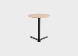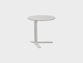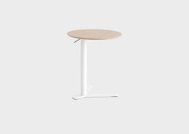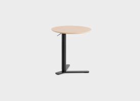 Petite table réglable en hauteur avec dispositif anti-rotation et système block-lift. Base, colonne et plaque de fi xation du plateau laqués epoxy. Les plateaux en plusieurs dimensions sont en multiplis de bouleau révêtu en bois avec bord visible ou en HPL Fenix® 10 mm en plusieurs finitions. Patins en feutre sous la base.