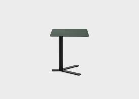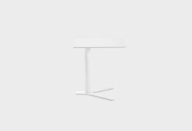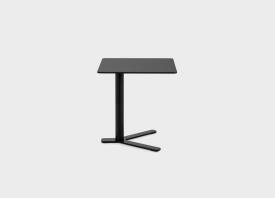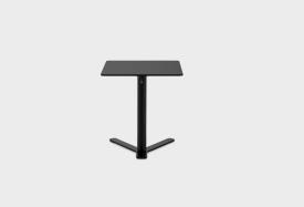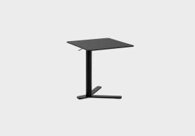 Petite table réglable en hauteur avec dispositif anti-rotation et système block-lift. Base, colonne et plaque de fi xation du plateau laqués epoxy. Les plateaux en plusieurs dimensions sont en multiplis de bouleau révêtu en bois avec bord visible ou en HPL Fenix® 10 mm en plusieurs finitions. Patins en feutre sous la base.