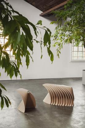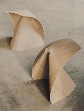 Lapalma Design. Shin Azumi, 2010 - Ce tabouret, issu du pliage d'une feuille de bois, rend hommage à la tradition de l'origami.