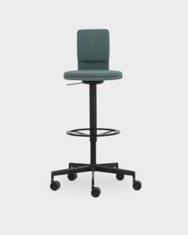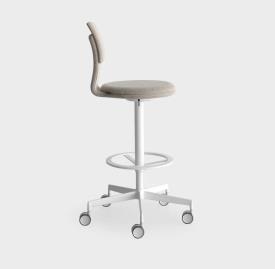 Lapalma Design. Karri Monni, 2014 - Le tabouret LAB avec dossier, repose-pieds et 5 roulettes autofreinantes parvient à être confortable sans perdre en légèreté.