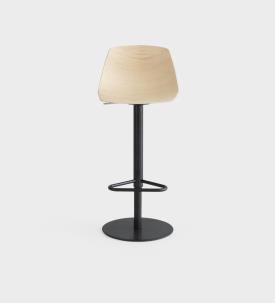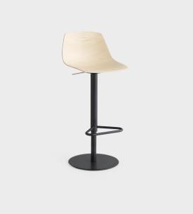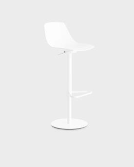 tabouret pivotant réglable en hauteur avec colonne en acier inox Ainsi 304 microbillé et base ronde revêtue en acier finition “toile de lin” ou complètement laqué époxy. Coque en multiplies courbé avec technologie 3D en plusieurs finitions, ou en polyuréthane rigide Baydur® laqué blanc ou noir ou entièrement revêtu en tissu, cuir ou ecopeau. Patins en feutre sous la base.