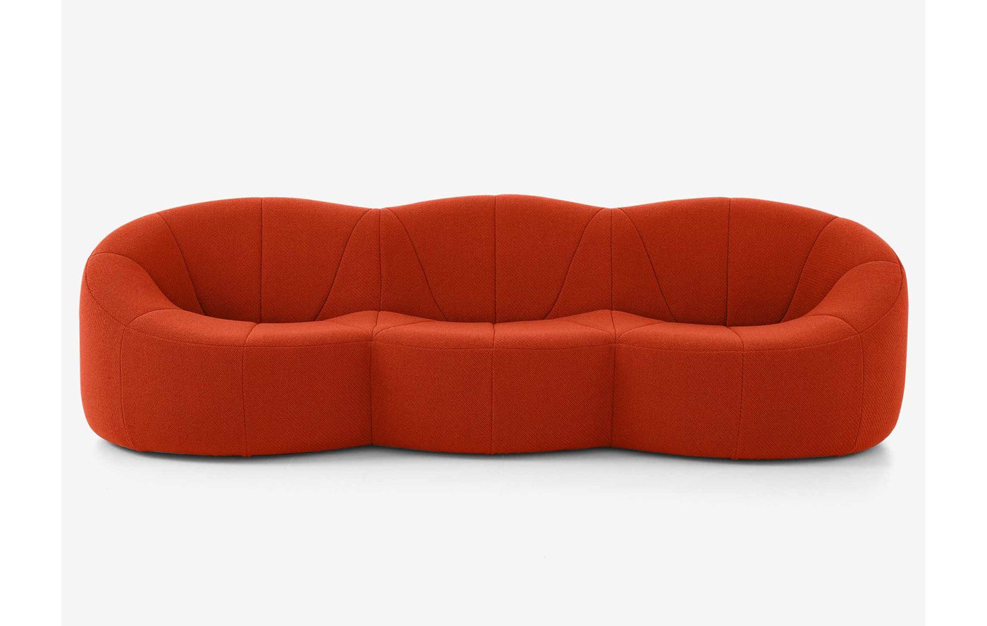 Ligne Roset Design. Pierre Paulin Dimensions : l 250 x h 70 x p 83 cm Première édition publique du salon dessiné en 1971 pour les appartements privés de Claude et Georges Pompidou au Palais de l'Elysée, Pumpkin est caractéristique du style révolutionnaire de Pierre Paulin qu'il a initié dès la fin des années 50. Formellement, Pumpkin évoque une citrouille géante qui offre une coquille protectrice et voluptueuse à son utilisateur. Impossible de résister à son appel ! STRUCTURE Base et ceinture en mousse polyéther 30 kg/m3 - 3,0 kPa reposant sur un socle en ABS thermoformé. CONFORT Assise et dossier enveloppants en forme baquet réalisés en mousse polyuréthane moulée 35 kg/m3 - 3,2 kPa, surmontée d'une couche de confort de mousse identique. COUTURE/HOUSSE Modèle déhoussable par un professionnel. Housse matelassée mousse polyéther sur la partie assise-dossier et ouate de polyester 100 g/m² sur la ceinture extérieure. HARMONIE Modèle monocolore réalisable en tissu et en cuir. Les lainages colorés conviennent parfaitement à l'esprit de Pumpkin. canapé 3 places