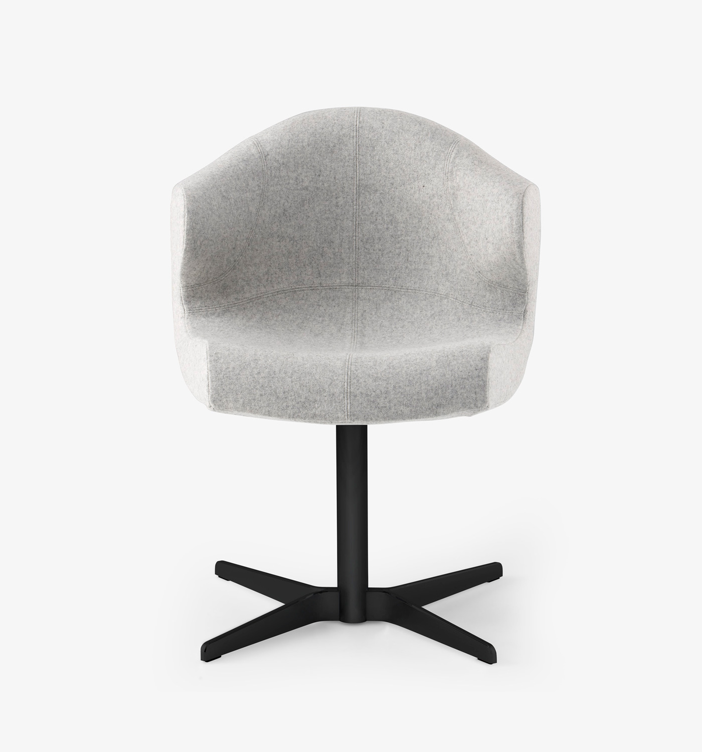 - 1 piétement pivotant et réglable en hauteur, à 5 branches avec roulettes, en aluminium finition noir grainé.