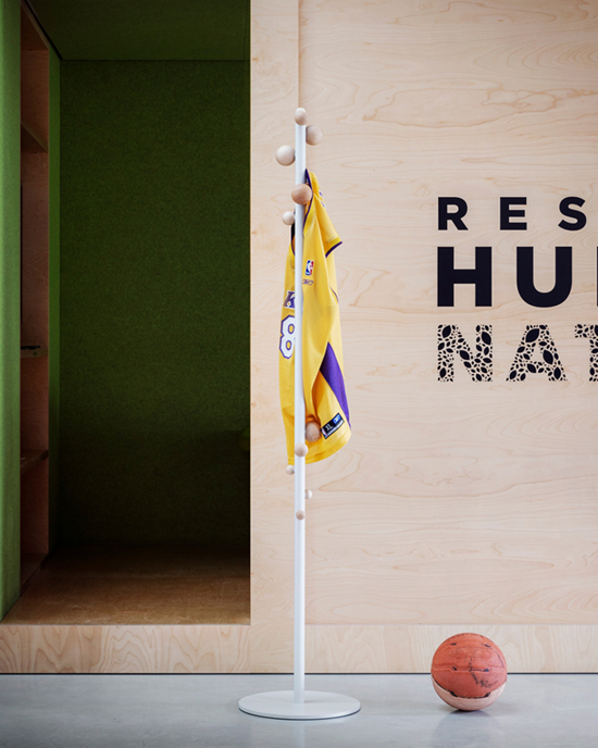 Une éclosion de petites sphères en hêtre sur une tige colorée contamine avec beaucoup de personnalité le portemanteau traditionnel. C’est un complément qui soutient vos défis.