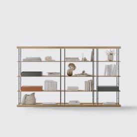 Design. Yonoh Creative Studio Dimensions : l 250 x h 150 x p 43 cm bibliothèque Bost utilisé comme séparateur en chêne naturel, Graphite et Brick.