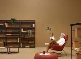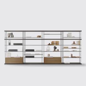 Design. Yonoh Creative Studio Dimensions : l 440 x h 199 x p 43 cm bibliothèque Bost de 2m de hauteur en noyer et Kai Black.