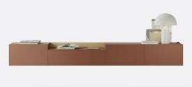 Design. Ibon Arrizabalaga Dimensions : l 320 x h 36 x p 37 cm Composition murale Lauki en chêne naturel et laquée en Brick. buffet